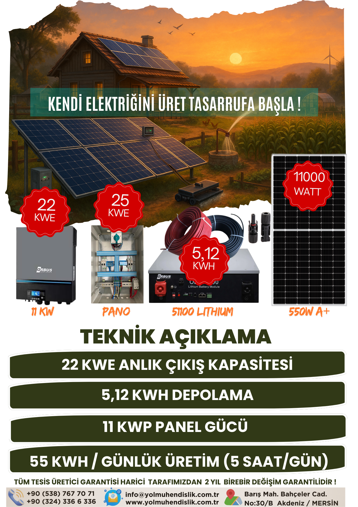 - Yüksek Güç Kapasitesi: 22 kW monofaze sistem, günlük enerji ihtiyaçlarınızı karşılamak için ideal bir çözümdür.