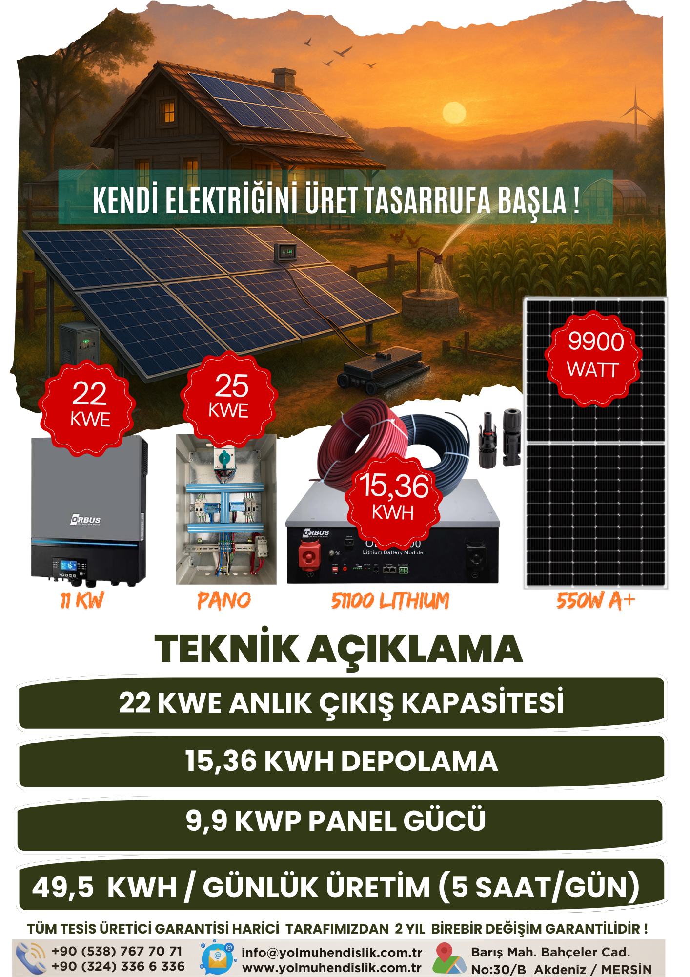Güneş enerjisi sistemleri, maliyetleri düşürmenin yanı sıra çevresel sürdürülebilirliğe katkıda bulunur. 22 Kw Monofaze GES, sadece düşük elektrik faturaları ile değil, aynı zamanda karbon ayak izinizi azaltarak çevreye daha fazla duyarlılık göstermektedir. Bu sistem, enerji bağımsızlığı sağlarken, gelecekteki enerji gereksinimlerinizi aşmayı hedefler.